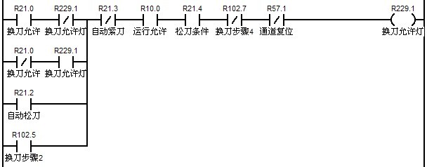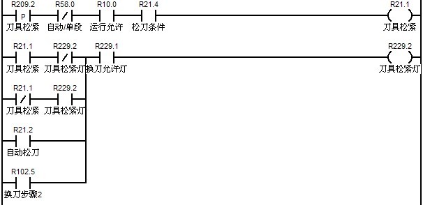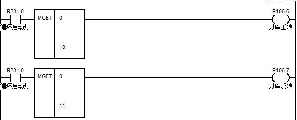 該程序段的意思是當兩個寄存器的值相等,則表示當前所選刀與當前主軸上的刀號相同,不進行換刀。