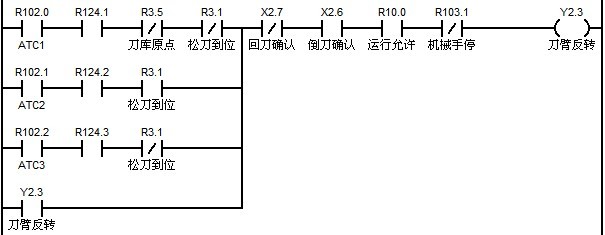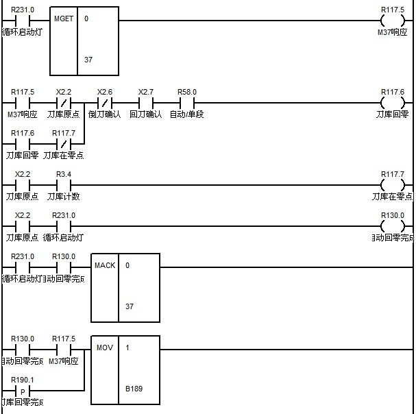 M37:刀庫正轉,直到碰到刀庫原點信號停止轉動。設置該時刻的刀位號為1號刀位。