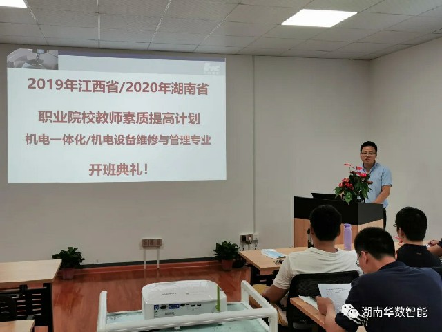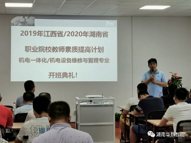 2020年8月3日由湖南省教育廳、江西省教育廳主辦、武漢華中數(shù)控股份有限公司承辦的湖南省2020年職業(yè)院校教師素質(zhì)提高計(jì)劃高職教師企業(yè)實(shí)踐——機(jī)電設(shè)備維修與管理專(zhuān)業(yè)培訓(xùn)班、江西省2019年職業(yè)院校教師素質(zhì)提高計(jì)劃高職教師“雙師型”教師專(zhuān)業(yè)技能培訓(xùn)——機(jī)電一體化專(zhuān)業(yè)培訓(xùn)班在湖南華數(shù)智能技術(shù)有限公司開(kāi)班。來(lái)自湖南省16所高職院校的19名老師、江西省19所高校25名老師參加了此培訓(xùn)班。