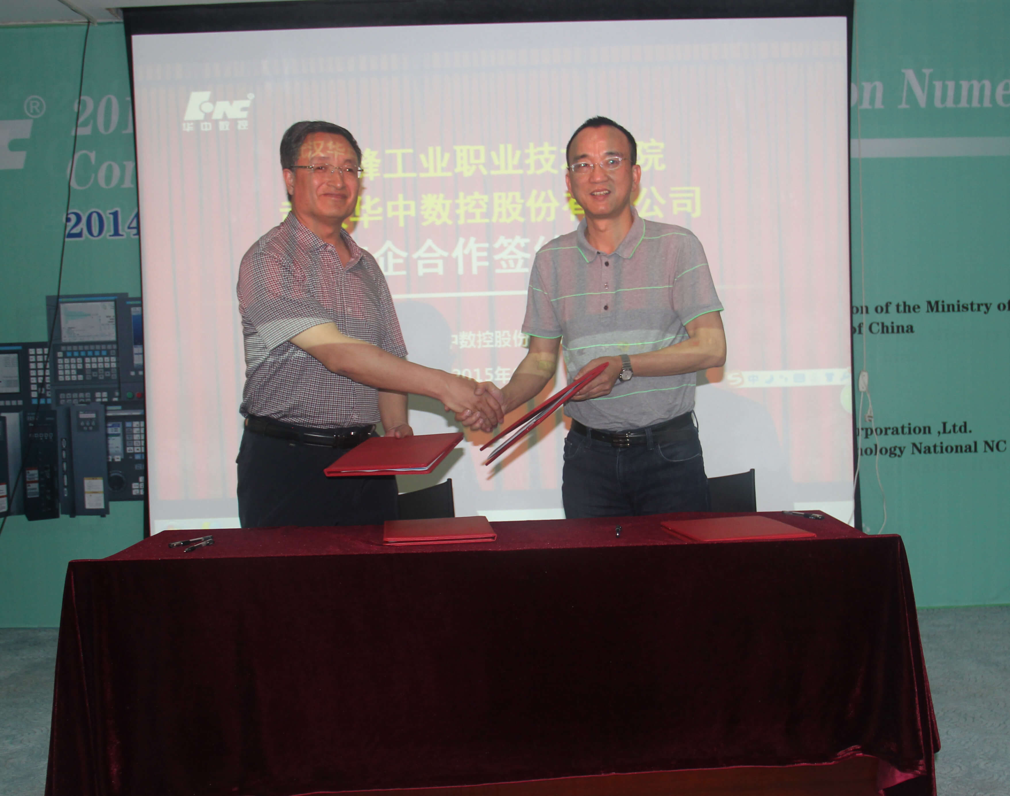 2015年6月4日,赤峰工業職業技術學院霍書記一行來訪,與武漢華中數控股份有限公司副總裁熊清平等領導舉行校企合作交流會。雙方就深化校企合作關系,實現深度合作達成一致,并且簽訂了相關項目合作協議。