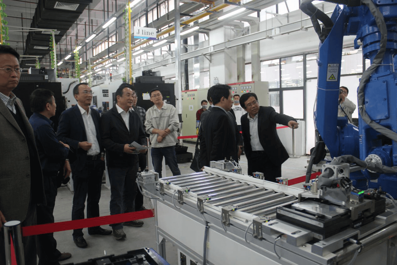 華中數控攜手勁勝精密公司建設的3C制造智能工廠迎接全國政協副主席、國家科技部部長萬鋼和中國工程院院長周濟一行視察