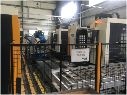 寶雞機(jī)床和華數(shù)機(jī)器人組成的輪轂單元外法蘭盤(pán)熱前加工智能產(chǎn)線