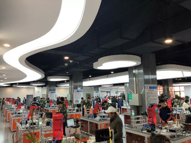 ? ? ??華中數(shù)控(遼寧)智能制造應(yīng)用示范基地由武漢華中數(shù)控股份有限公司與遼寧東升共同出資打造,目前東北地區(qū)規(guī)模最大、設(shè)備最為齊全的工業(yè)機(jī)器人實訓(xùn)基地?;卣嫉孛娣e近2萬平方米,包括媒體教室、實訓(xùn)室、技能訓(xùn)練中心等教學(xué)場所,引進(jìn)工業(yè)機(jī)器人操調(diào)實訓(xùn)平臺、工業(yè)機(jī)器人機(jī)電一體化拆裝工作站、智能制造生產(chǎn)線、五軸加工中心以及3D打印機(jī)等先進(jìn)智能制造設(shè)備60余套,可同時容納300人進(jìn)行實訓(xùn)。