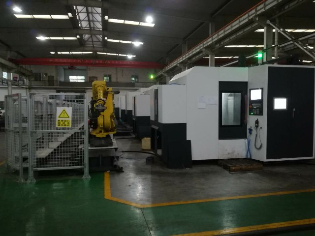 本項目由四川普什寧江機床有限公司生產的五臺臥式加工中心、1臺FANUC的6關節機器人、倍福控制器共同組成的柔性線。其中2臺TH6363四軸臥式加工中心和2臺THMS6350臥式加工中心裝配華中8型HNC-848C系統。