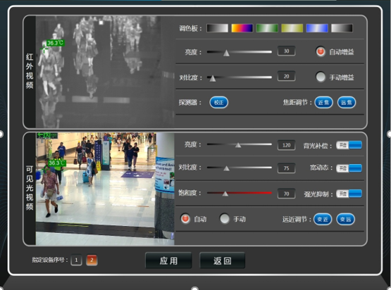 2、軟件:配套完全自主開發的系統軟件“紅外智能體溫監控系統”,自主設計、操作簡便的軟件系統主界面,各項參數設置界面,具備獨特的系統功能,例如:系統狀態自檢功能,包括對黑體狀態、環境參數、網絡狀態等參數的自動檢測;根據系統反饋參數自適應調整,歷史記錄瀏覽,報警圖片推送,高清視頻信號后傳,人臉識別誤報警排除等多項功能;同時能夠支持后臺數據接口對其他數據系統平臺開放對接,包括與海關的智慧衛檢系統對接功能、旅客艙單系統對接功能等,并且由于完全自主開發系統軟件,可支持免費升級和調整定制的海關各種定制化需求。
