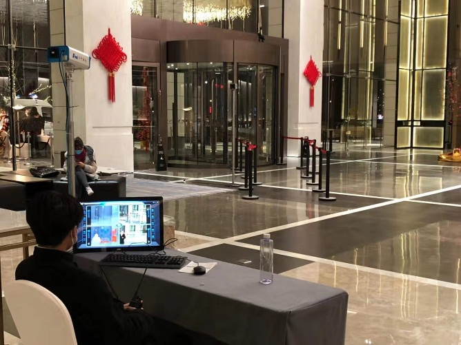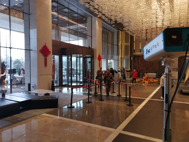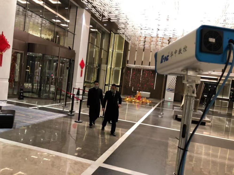1月26日,正月初二,上午,華中數控紅外事業部宋天教等同事,緊急趕赴卓爾萬豪酒店現場,在酒店大堂專設體溫檢測處迅速安裝華中數控“紅外熱成像智能體溫檢測系統”,馬上投入設備安裝調試、培訓操作方法等工作,通過對援漢醫療團隊成員的體溫監測,嚴格檢查健康狀況,確保醫療團隊的生命安全,為援漢醫療團隊筑起生命健康“第一道防線”。