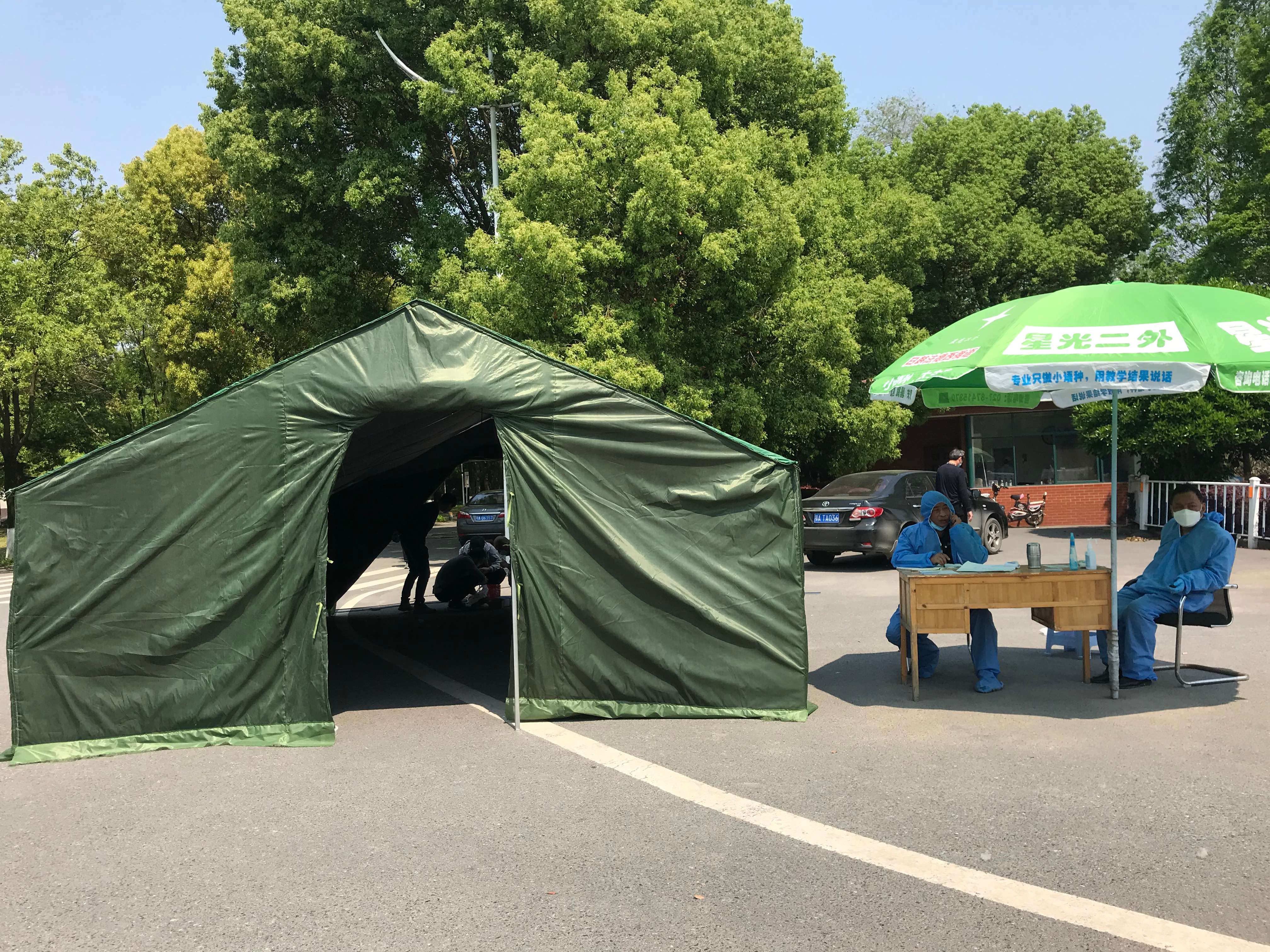 ? ? ? ? ? ? ? ? ? ? ? ? ? ? ? ? ? ? ?▲帳篷內的華中數控紅外智能體溫檢測系統