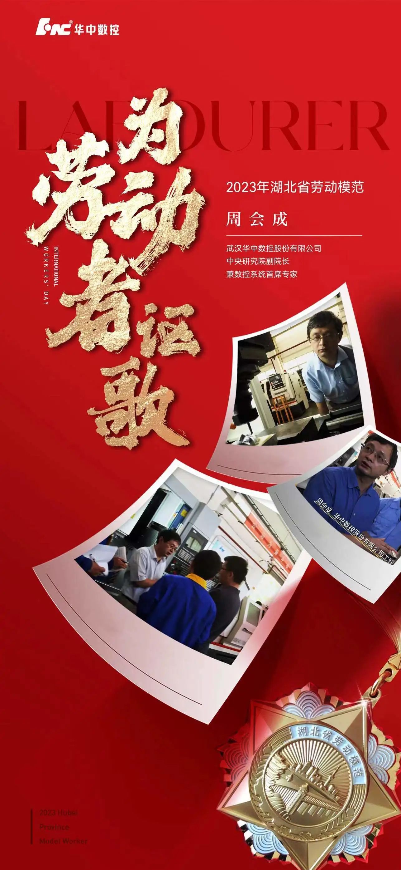4月27日上午,湖北省慶祝“五一”國際勞動節暨勞動模范和先進工作者表揚大會召開,華中數控中央研究院副院長兼數控系統首席專家周會成獲評2023年湖北省勞動模范。周會成老師曾先后榮獲武漢市勞模、湖北省有突出貢獻中青年專家、...