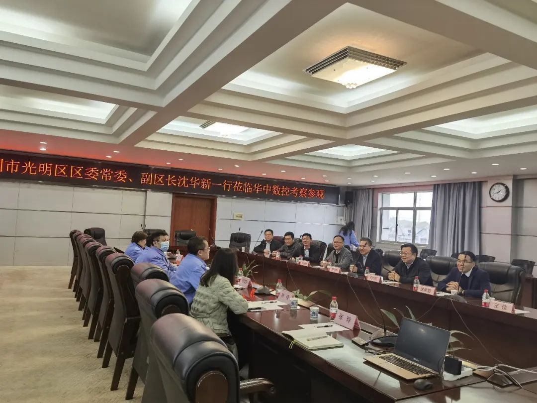 3月21日,深圳市光明區委常委、區政府副區長沈華新一行蒞臨武漢華中數控股份有限公司參觀考察,就推動智能制造等產業合作進行交流。武漢華中數控股份有限公司(以下簡稱:華中數控)總裁田茂勝、副總裁李軍、董事會秘書陳程、深...