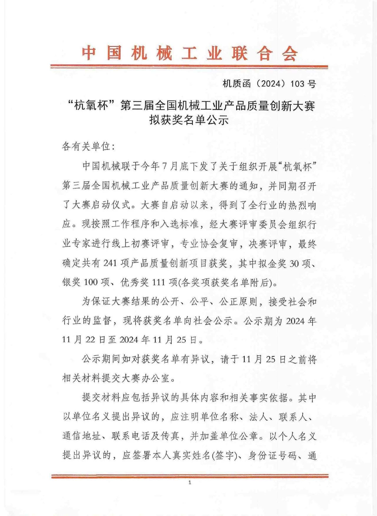 今年7月,中國機械工業聯合會下發了關于組織開展“杭氧杯”第三屆全國機械工業產品質量創新大賽的通知,并同期召開了大賽啟動儀式,得到了全行業的熱烈響應。經大賽評審委員會組織行業專家進行線上初賽評審、專業協會復審、決賽...